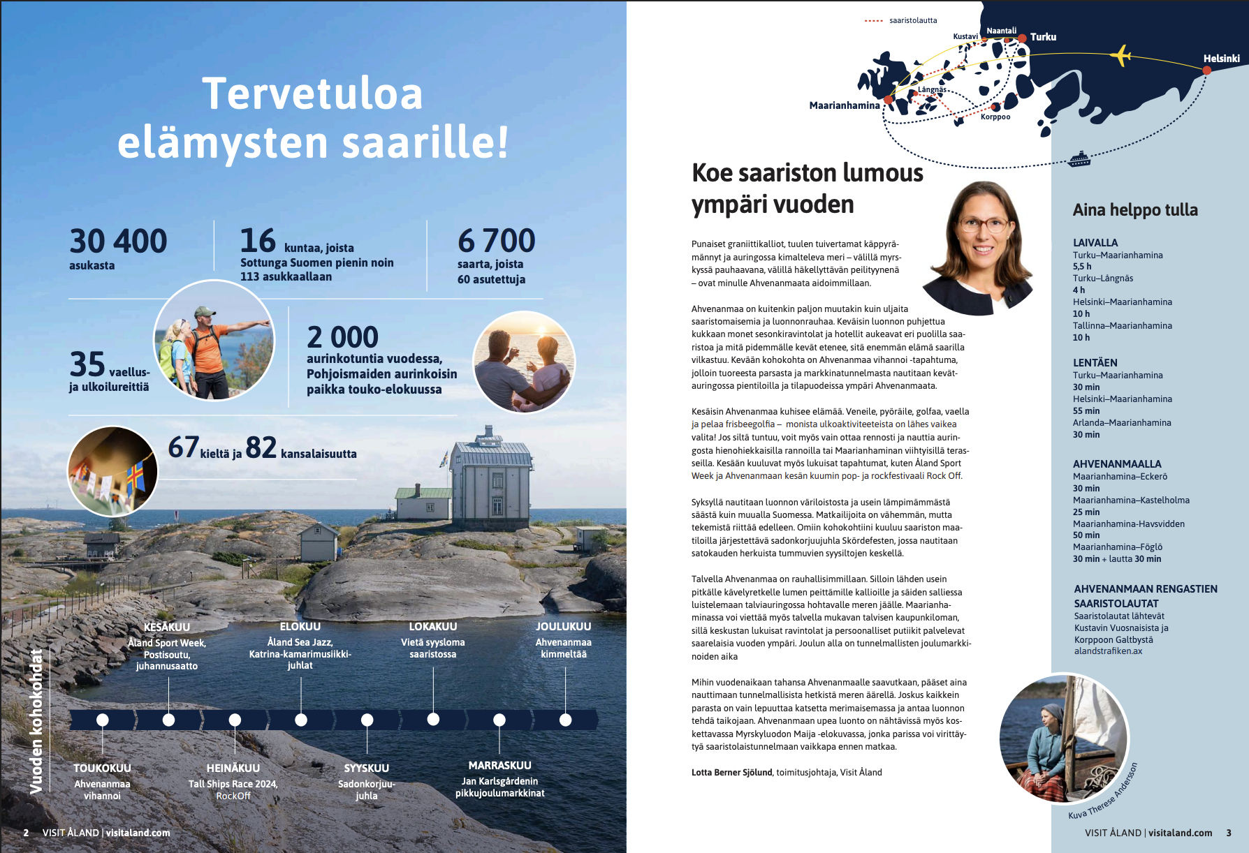Läsarna finns i huvudsak Åbo, Tammerfors och Helsingfors. Broschyren är en del av Visit Ålands Varumärkesbyggande kommunikation och innehåller inspiration, aktiviteter och tips för vår, sommar och höst 2024. Broschyren distribueras i dagsläget endast på finska. Broschyren delas också ut på mässor på finska sidan samt till återförsäljare.